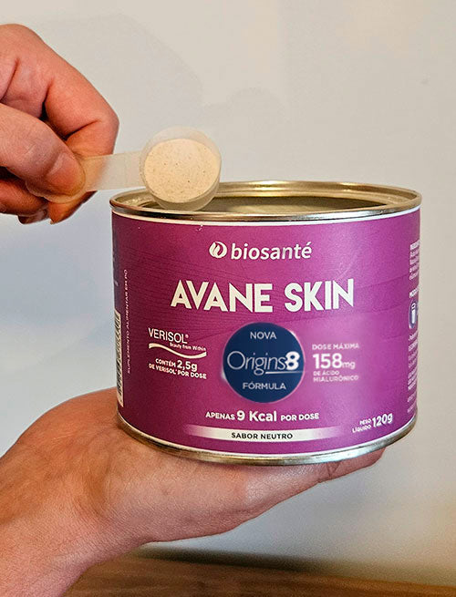 Além de ter o colágeno Verisol, o Avane Skin é o único com a dose máxima de ácido hialurônico, o que torna ele único no mercado.